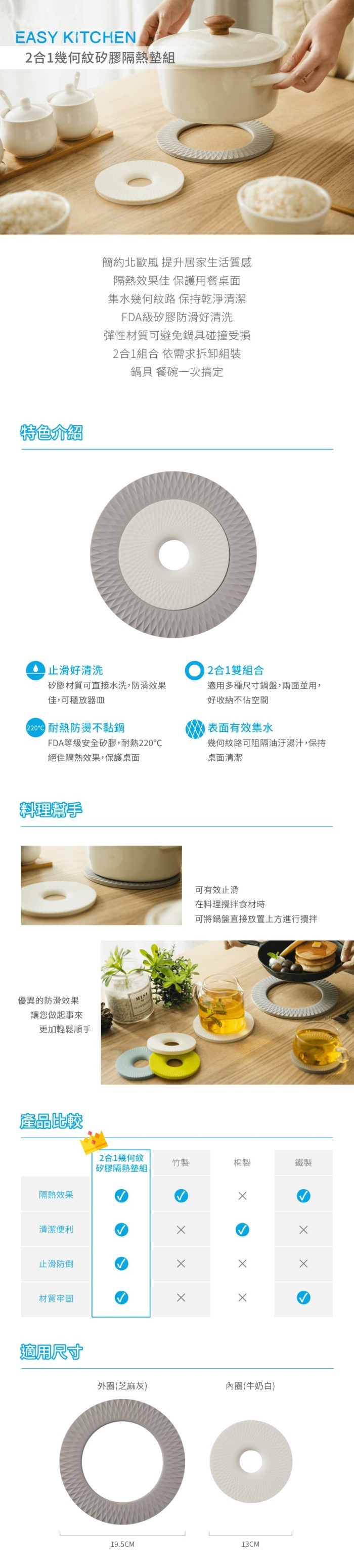 EASY KITCHEN 2合1幾何紋矽膠隔熱墊組